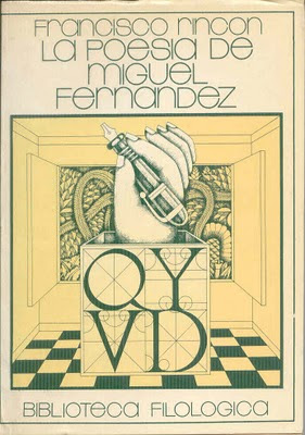 Y, sobre todo, Miguel. A quien hace treinta años intentó comprender, encontrar la poesía de Miguel para terminar rastreando a Miguel en su poesía[4]. He aquí sus propias huellas: "La palabra esencial de Miguel Fernández", Estafeta literaria, diciembre de l975, pp. l4‑l5; "Eros y anteros, un ejercicio informal de poesía", Retalls, nº 2, mayo de l976, pp. 46-54; su trabajo de investigación La poesía de M. Fernández, ed. Bello, Valencia, l978; “El ars poética de Miguel Fernández (evocación en modulema)”, Aldaba. Miguel Fernández (In Memoriam), nº 23, 1994, pp. 141-153, ejemplar dedicado al poeta, como sabemos.