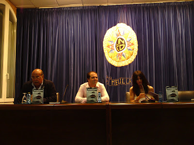 Ángel Castro, Antonio César Morón y Cristina Hernández en la presentación de Monólogos con maniquí, en la Uned el viernes 25 de mayo de 2012.. |
